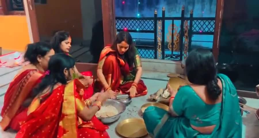 सासाराम के सिविल लाइन में छठ पूजा का प्रसाद बनाती व्रती
