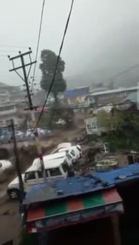 बादल फटने के कारण बहती गाड़ियां, उफान पर नदियां