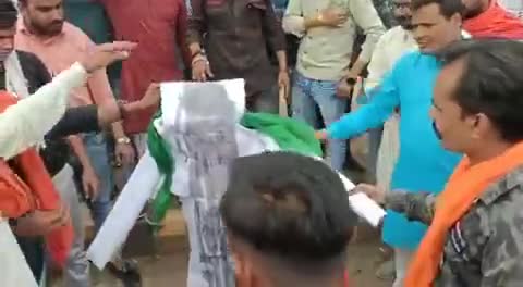 उदयपुर में कन्हैया लाल जी की हत्या के विरोध में विश्व हिंदू परिषद बजरंग दल ब्यावरा द्वारा आतंकवाद का पुतला दहन किया ।
