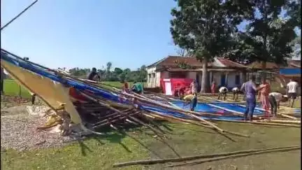 শীতলকুচি ব্লকের ভাঐরথানা অন্তরের অন্তর্গত পশ্চিম খেংচি এলাকায় বুধবার রাতের অন্ধকারে আচমকা ঝড়ো হাওয়া বয়ে যায়। তাতেই উপড়ে পড়ে মণ্ডপের একাংশ। গ্রামের মানুষদের মধ্যে মুহূর্তের মধ্যে চাঞ্চল্য ছড়িয়ে পড়ে। তবে সৌভাগ্যক্রমে কোনও বড় দুর্ঘটনা ঘটেনি। পূজো উদ্যোক্তাদের পক্ষ থেকে জানানো হয়েছে, ক্ষতিগ্রস্ত অংশ মেরামতের করেপূজা মন্ডপ তৈরি করা হবে।