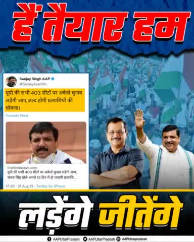 70 साल सत्ता बदली, 22 में व्यवस्था बदलेगी। मुस्कुराइए AAP आ गई है।