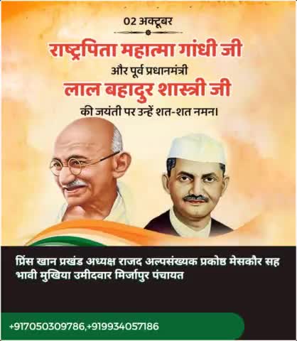 सत्य,त्याग,न्याय, एवं सद्भाव के पुजारी राष्ट्रपिता महात्मा गांधी जी और पूर्व प्रधानमंत्री लाल बहादुर शास्त्री जी के जन्मदिन पर सत सत नमन 🙏🙏🙏