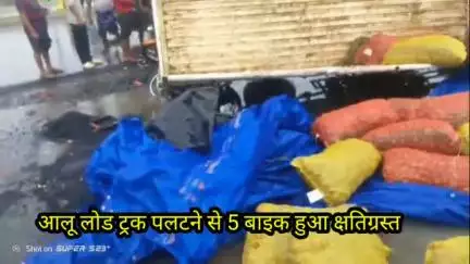 गोड्डा महागामा राष्ट्रीय राजमार्ग 133 गम्हरिया गांव के पास आलू लोडेड ट्रक पलटने से आधा दर्जन बाइक हुआ क्षतिग्रस्त