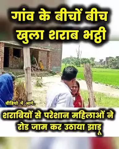 शराब भट्ठी हटाने के लिए महिलाओं ने रोड जाम कर उठाया झाड़ू किया विरोध प्रदर्शन