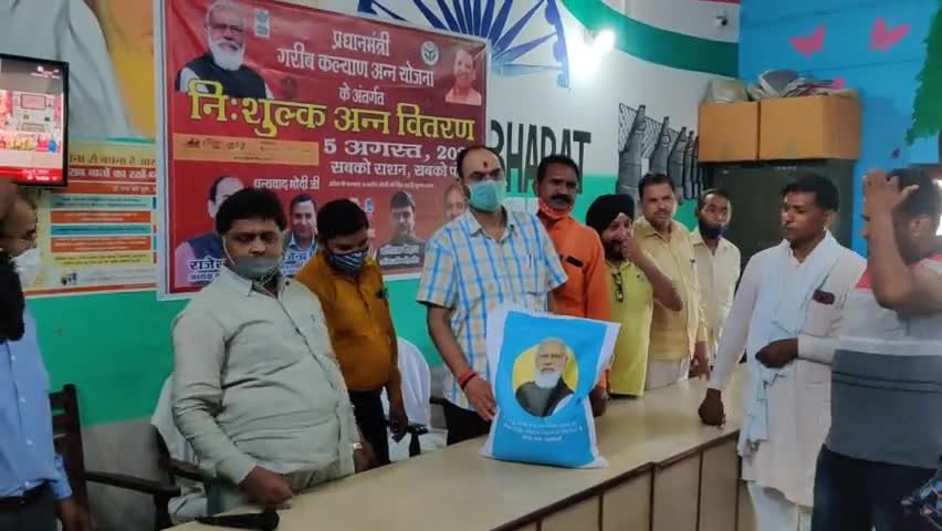 प्रधानमंत्री गरीब कल्याण अन्य योजना के अंतर्गत निशुल्क अन्न पात्रों को वितरण पालिका सभागार में करते हुए