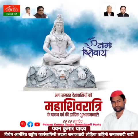 सभी देशवासियों को महाशिवरात्रि की हार्दिक बधाई एवं शुभकामनाएं पवन कुमार यादव विशेष आमंत्रित राष्ट्रीय कार्यकारिणी सदस्य समाजवादी लोहिया वाहिनी
