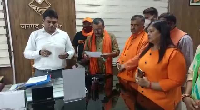 पशचिम बगाल मे बिगढती कानुन व्यवस्था को लेकर हिन्दु युवा वाहिनी द्वारा जिलाधिकारी को ञापन देकर राष्ट्रपति शासन की मान्ग की गई