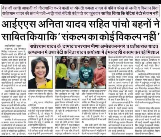 ias anita yadav sahit paanch bahno ne sabit kiya ki sankalp ka koi vikalp nahi