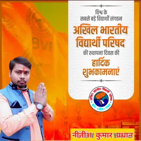विश्व के सबसे बड़े विद्यार्थी संगठन @abvpvoice की स्थापना दिवस की हार्दिक शुभकामना #NitishPradhan