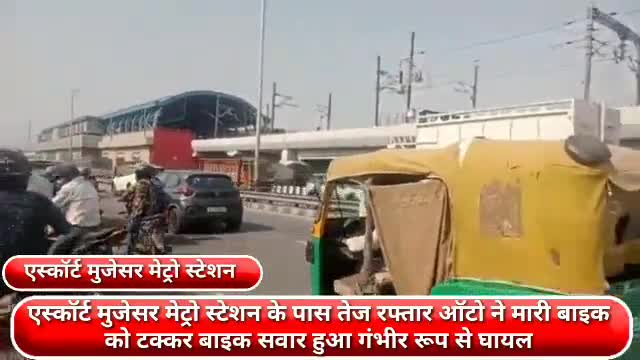 फरीदाबाद: एस्कॉर्ट मुजेसर मेट्रो स्टेशन के पास तेज रफ्तार ऑटो ने एक बाइक को मारी टक्कर, बाइक सवार शख्स हुआ गंभीर रूप से घायल