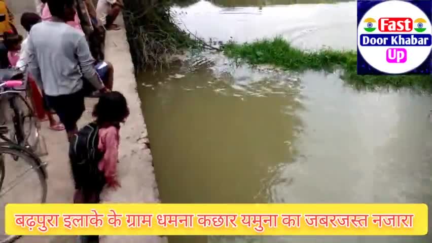 इटावा: बढ़पुरा इलाके के ग्राम धमना कछार में यमुना नदी का पानी घुसा रास्ता हुई जाम किसान की बाजार की फसल हुई नस्ट