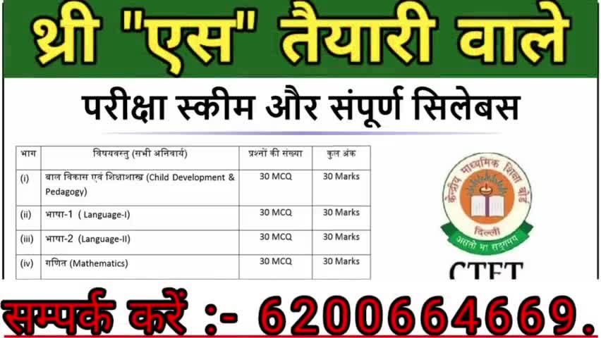 CTET :- भाषा 2 में "संस्कृत" ही रखें. सिलेबस में नही हुआ है, बदलाव. अमरपुर :- थ्री एस तैयारी वाले. कक्षा से आज ही जुड़ें.