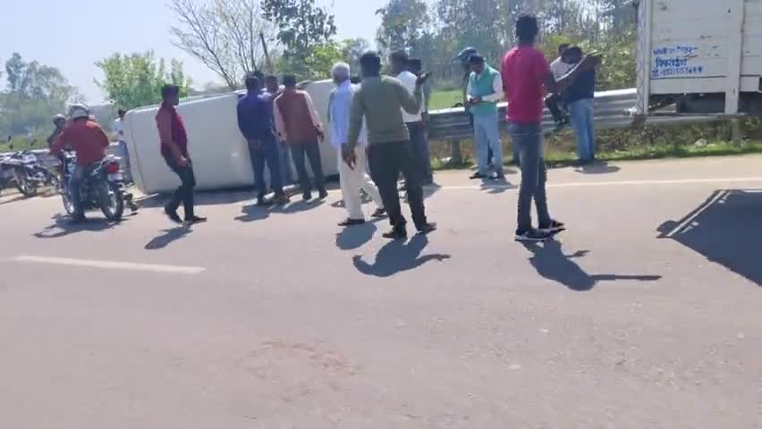 महाराजगंज चेहरी: गाड़ी का टायर फटने के वजह से भयानक दुर्घटना सभी यात्री सुरक्षित बचे।