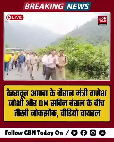 देहरादून में आपदा के वक्त कैबिनेट मंत्री गणेश जोशी और DM सविन बंसल के बीच सामने आया तीखा संवाद। मंत्री ने नाराजगी जताते हुए कहा – "काम वाम ठीक कर ले अपना" DM सविन बंसल बोले – "क्यों, क्या हुआ?" मंत्री ने कहा – "रात को CM सेक्रेटरी ने फोन उठा लिया, विनय शंकर ने उठा लिया। सुबह जब मैंने CM के यहां फोन किया, तब उठ रहा है।" इसके बाद DM हाथ जोड़कर वहां से चले गए। घटना का वीडियो वायरल हो गया है और सोशल मीडिया पर चर्चाओं का विषय बन गया है। #gbntoday #Dehradun #GaneshJoshi #SavinB