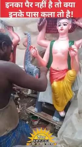 देखिए पैर नहीं है लेकिन अपने हाथ के कला से भगवान विश्वकर्मा की मुर्ति बना रहे हैं!
