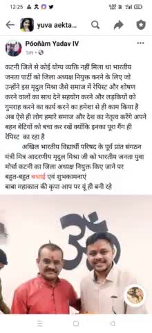 महिला उत्पीड़न मामले में रेपिस्ट और शोषण करने वालों का साथ देने वाले मृदुल मिश्रा को कटनी जिला अध्यक्ष नियुक्त किया