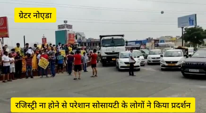 गौतम बुद्ध नगर: ग्रेटर नोएडा वेस्ट में सुपरटेक इकोविलेज 1 सोसायटी के सैकड़ों निवासियों ने रजिस्ट्री ना होने के चलते किया प्रदर्शन