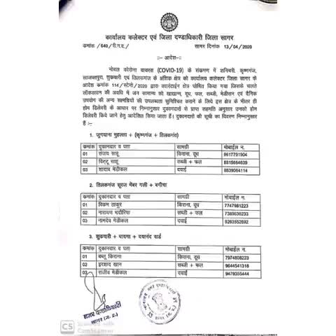 सागर: लाॅकडाउन के मद्देनजर शहर के कोरोना संक्रमित क्षेत्रों में होम डिलीवरी करने वाले व्यापारियों की सूची की गई जारी