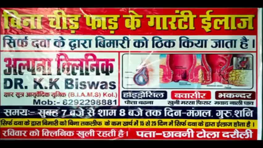 बिना चीरफाड़ गारंटी इलाज।हाईड्रोसील,बावासीर,भगन्दर पोथा बढ़ना ,खुनी,बादी मस्सा ,नाली घाव☎️8292298881 स्थान : दरौली