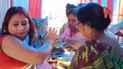 রাজগঞ্জ: মালবাজারে বোধন ক্লাবের সার্বজনীন দুর্গাপূজাতে সিদুর খেলায় মেতে উঠল মহিলারা