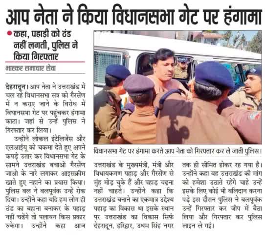 मेरे द्वारा विधानसभा के मुख्य द्वार पर सरकार के कि गैरसैंण में सत्र न कराए जाने को लेकर के विरोध प्रदर्शन किया गया जय पहाड़ जय पहाड़ी