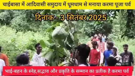 चाईबासा में आदिवासी समुदाय में धूमधाम से मनाया करम पूजा ,भाई-बहन के स्नेह,सद्भाव और प्रकृति के सम्मान का प्रतीक है करमा पूजा पर्व।