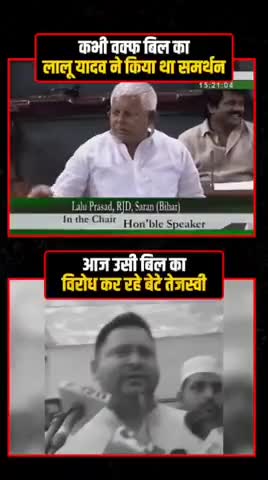 कभी वक्फ बिल का लालू यादव ने किया था समर्थन, आज बेटे तेजस्वी कर रहे विरोध! बताइए, पिता गलत या बेटा? #WaqfBoard #waqt