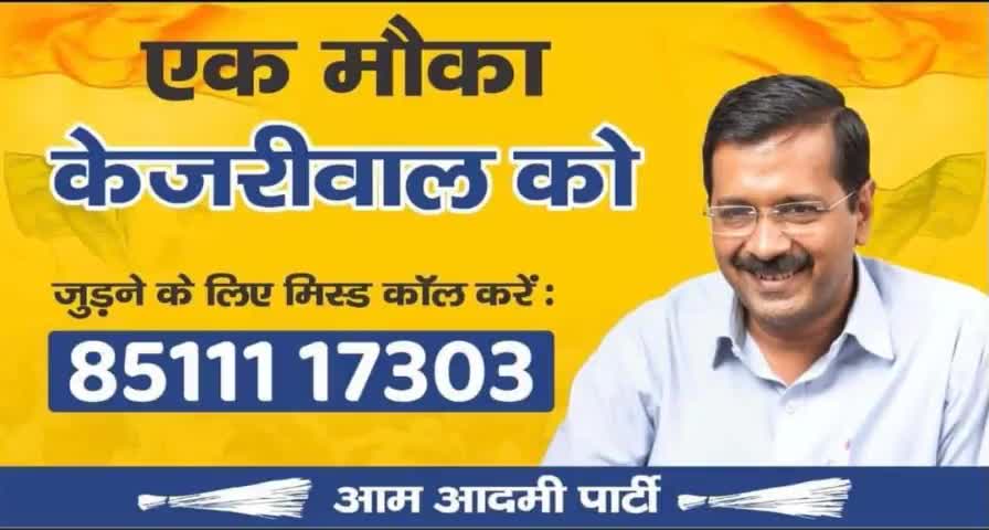 एक मौका केजरीवाल को। आम आदमी पार्टी से जुड़ने के लिए इस पर 8511117303 मिस्ड कॉल करें ।