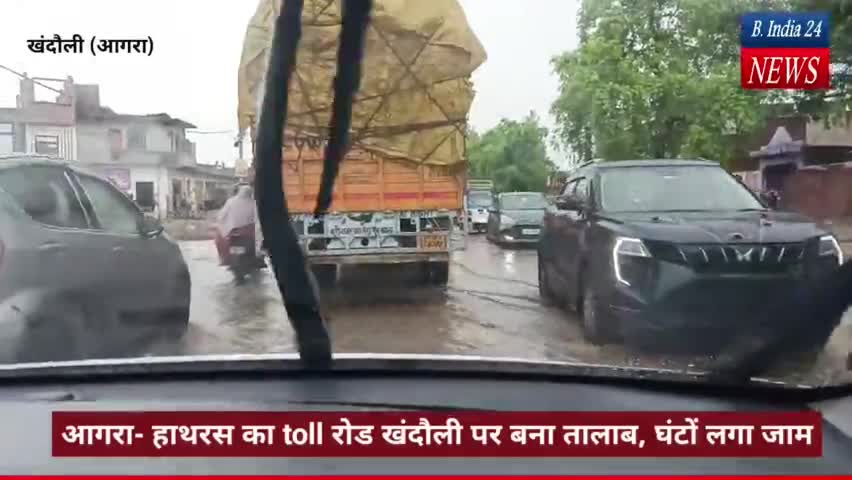 आगरा - हाथरस का toll रोड खंदौली पर बना तालाब, घंटों लगा जाम
