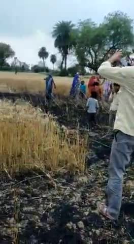 Gram panchayat mudara me shuseel yadav ke khet me bijli ka tar tutne se khadi fasal me aag lgne se fasal hui rakh.