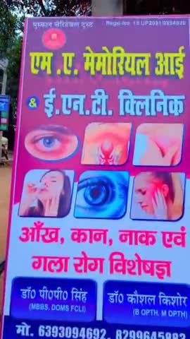 एम ए मेमोरियल आई एंड ईएनटी क्लिनिक रेलवे स्टेशन रोड राधे होटल के बगल में शाहिद कटरा के ऊपर घोसी मऊ 8299645883
