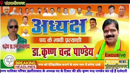 नगर पालिका परिषद ख़लीलाबाद के अध्यक्ष पद के टिकट की बीजेपी से डॉ0 कृष्ण चन्द्र पाण्डेय कर रहे है दावेदारी पिछले 2 पीढ़ी