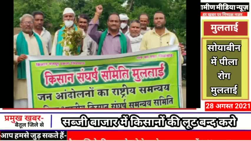 मुलताई 28 अगस्त 2021किसान एकता जिंदाबाद सब्जी मंडी में अवैध वसूली और सोयाबीन फसल के सर्वे को लेकर ज्ञापन