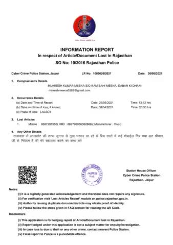 लालसोट से रालावास के बीच जेब से मोबाइल गिर गया प्रार्थी के द्वारा प्राथमिकी दर्ज करवाई गई