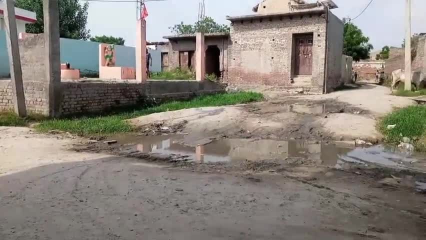 गुन्नौर: गांव पतेई कायस्थ मे हनुमान मन्दिर के सामने कीचड और गांव मे जाने का मेन रास्ता खराव गांव के लोगो को आने जाने...