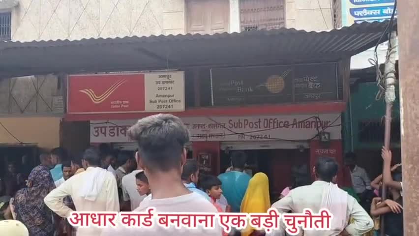 आधार कार्ड बनवाना एक बड़ी चुनौती भीड़ से हुए पोस्ट मास्टर अमांपुर परेशान बुलाया पुलिस प्रशासन अन्य आधार सेंटर की मांग