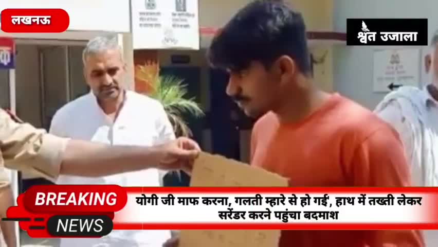 योगी जी माफ करना, गलती म्हारे से हो गई', हाथ में तख्ती लेकर सरेंडर करने पहुंचा बदमाश #upcm