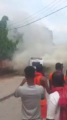 असरगंज: असरगंज के शंभूगंज मोड़ के समीप कांवड़ियों के मैजिक गाड़ी में अचानक आग लगने से अपरा तफरी मच गई