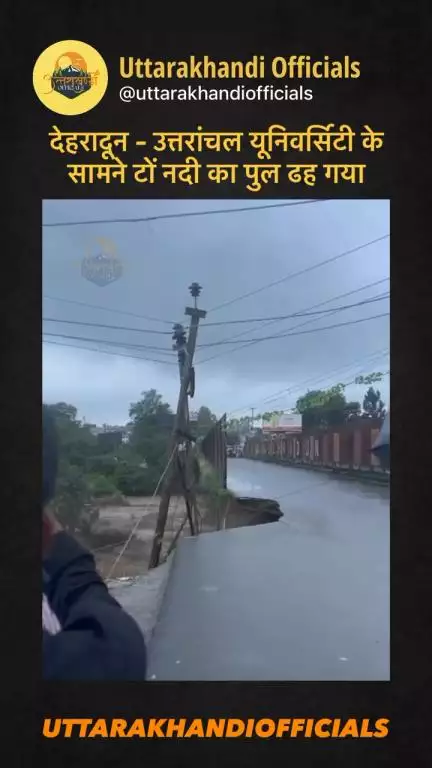 ताज़ा खबर: देहरादून – उत्तरांचल यूनिवर्सिटी के सामने टों नदी का पुल ढह गया