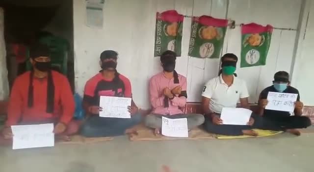 पप्पू यादव की गिरफ्तारी जा प्रखंड अध्यक्ष धीरेंद्र कुमार व अन्य कार्यकर्ता के द्वारा कालापट्टी बांधकर विरोध जताया गया