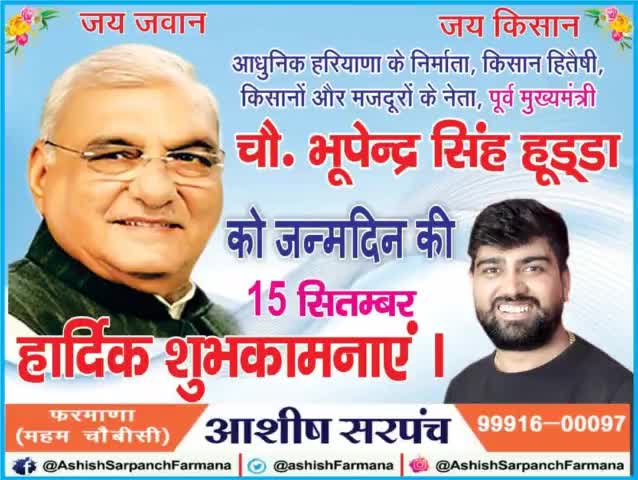 विकास पुरुष और हम सब के प्रिय हरियाणा के पूर्व मुख्यमंत्री चौधरी_भूपेंद्र_सिंह_हुड्डा जी को जन्मदिवस की हार्दिक बधाई और #शुभकामनाएं।