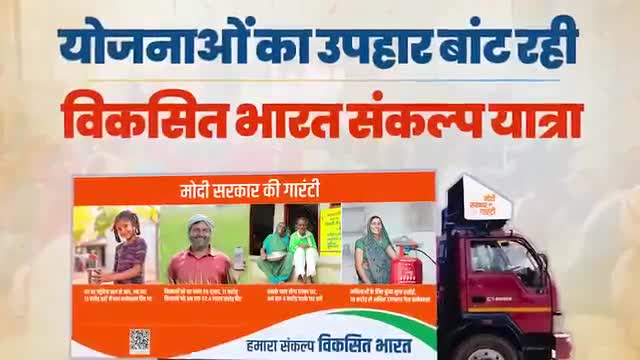 #ViksitBharatSankalpYatra के दौरान 'मोदी की गारंटी वाली गाड़ी' जन-जन के द्वार पहुंचकर योजनाओं का उपहार बांट रही है।
