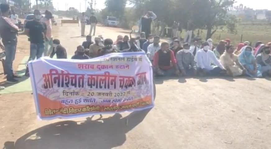 कवर्धा: NH 30 में नंदी विहार के शराब दुकान के विरोध में महिलाओं ने भाजपा के साथ फिर किया चक्काजाम