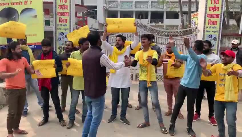 सदर एसडीओ मधुबनी के तानाशाही के खिलाफ एमएसयू का प्रतिकार मॉर्च के बाद समाहरणालय के सामने प्रदर्शन।