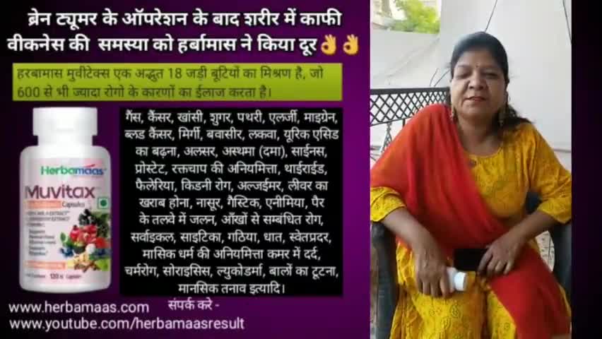 ब्रेन ट्यूमर के ऑपरेशन के बाद शरीर में काफी वीकनेस की समस्या को हर्बामास ने किया दूर👌👌 #braintumor @laxmikaurav852