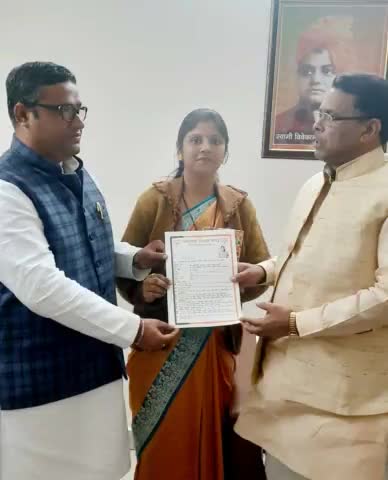 रिया माहेश्वरी पत्नी संजय माहेश्वरी जिला मीडिया प्रभारी भाजपा बुलंदशहर ने नगर पालिका बुलंदशहर अध्यक्ष पद के लिए, आदरणीय नरेंद्र कश्यप जी नगर पालिका चुनाव प्रभारी को अपना आवेदन देते हुए।