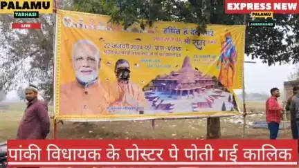 मेदिनीनगर (डालटनगंज): पांकी विधायक के पोस्टर पे अज्ञात लोगों ने पोती कालिख। #पांकी#पलामू#बीजेपी