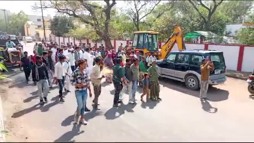 कानीखेडी़ में प्रशासन के द्वारा जो किसानों के मकान और फसले उजाड़ी गई हैं विरोध में धरना प्रदर्शन