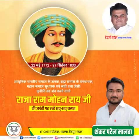 महान समाज सुधारक, शिक्षाविद राजा राममोहन राय जी की जयंती पर उन्हें कोटि-कोटि नमन l