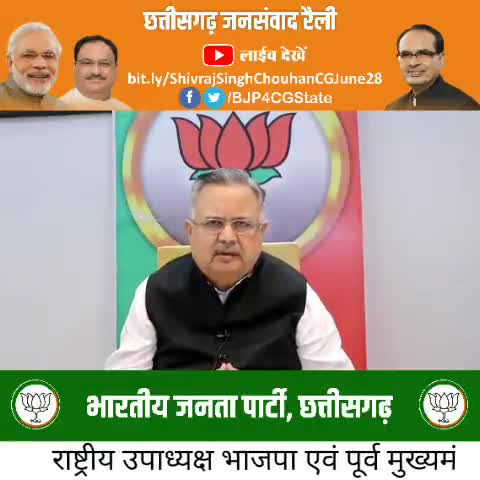 28 जून को होने वाली वर्चुअल रैली के लिए छत्तीसगढ के पूर्व मुख्यमंत्री डॉ रमन सिंह जी का संदेश.